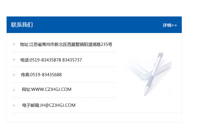地址:常州市新北區友邦商務大廈1幢16、17層  電話:0519-85101652  傳真:0519-85112595  郵編:213022  網址:www_cz-jiayue_cn.fenxiaocn.com  郵箱:xiajifengaa@163.com